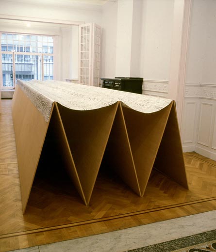 Une feuille de sapin, Anvers, Galerie Annie Gentils, 1986. Papier sérigraphié, frottage pastel gras, contre-plaqué.