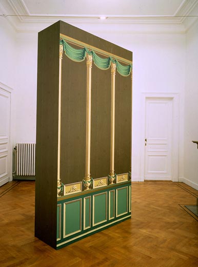 Sans titre, Anvers, Galerie Annie Gentils, 1989. Papier peint zuber, contre-plaqué.