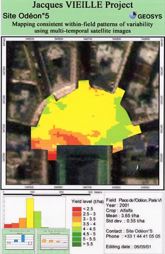 Place de l'Odéon, Paris, Galerie Site Odéon, 2001. Carte de rendement agricole, impression numériques.