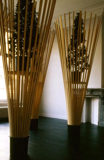 4 lauriers, Anvers, Galerie Annie Gentils, 1986. Lauriers, liteaux sapin, containers plastiques.
