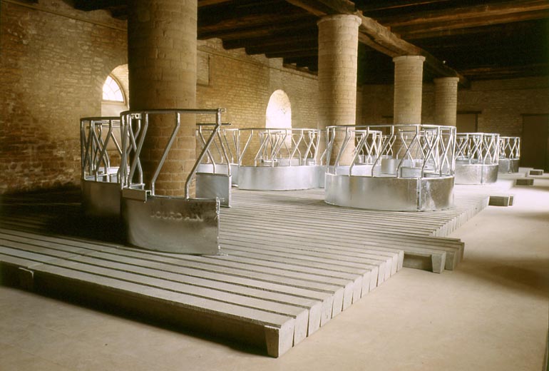 Sans titre, Cluny, Ecuries de Saint Hugues, 1991. Caillebotis béton, rateliers métal.