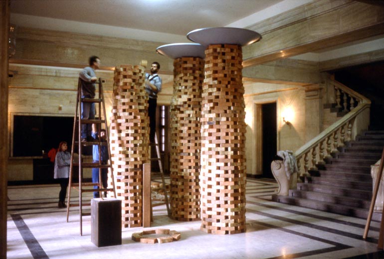 Construction, Sofia, Musée, 1993. Briques, paraboles reception satellites.