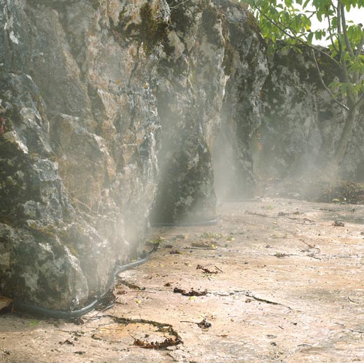 Foggers, Calvignac, Rocher de la Baume, 2002. Brumisateurs, tuyau souple.