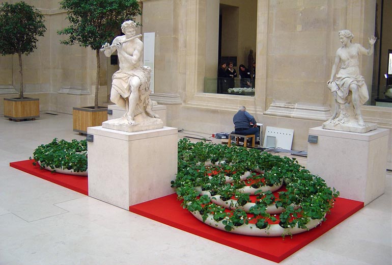 Charlotte des Bois, Paris, Musée du Louvre, 2007. Fraisiers charlotte, tuyau drainage.