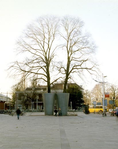 Sans titre, Haarlem, Place de la Gare,1998. Tôle inox perforée, ormes champêtres.