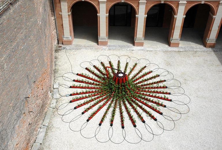 Mara des Bois 2000, Toulouse, DRAC Hôtel ST Jean, 2007. Fraisiers mara des bois, tubes TPC, grue, arrosage automatique.