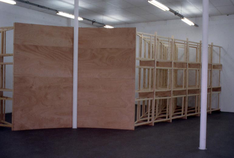 Construction 86, Villeurbanne, Nouveau Musée,1989. Tréteaux, contre-plaqué.