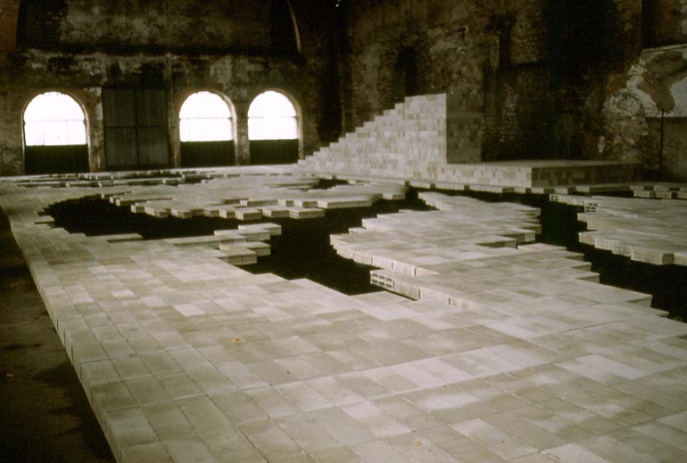 Une feuille d'acanthe, Ronchamp, Puits Arthur, 1990. Parpaings de ciment, poussiére de charbon.