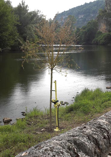 Lave yeux 2000, Calvignac, cale du port de Larnagol, 2002. Lave yeux, saule pleureur, eau.
