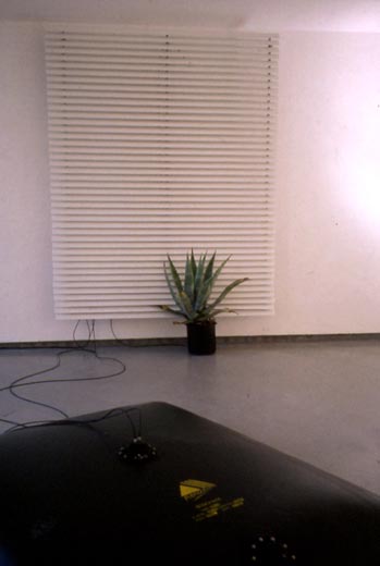 Agave, Nîmes, Ecole des Beaux Arts, 1998. Agave, brise soleil orientable, citerne souple, pompe haute pression, brumisateur.