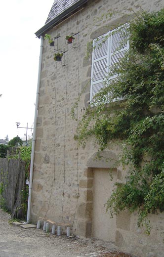 3 salades, La souterraine, 2005. Salades, ascenseurs pour la chasse à la palombe, fil de fer, cordelette, contrepoids ciment.