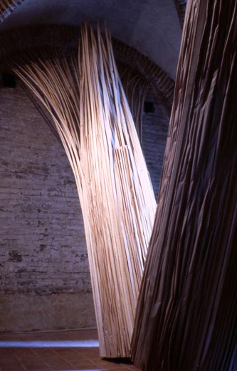 Sans titre, Toulouse, Musée des Augustins, 1983. Liteaux sapin, papier kraft.