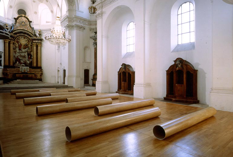 Sans titre, Sion, Eglise des Jésuites, 1987. Linoléum, tubes carton.