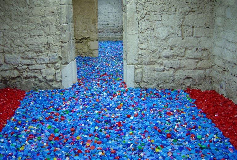 Jardiner 94, ST Restitut, Lithos Art Contemporain, 2006. Bouchons à recycler.